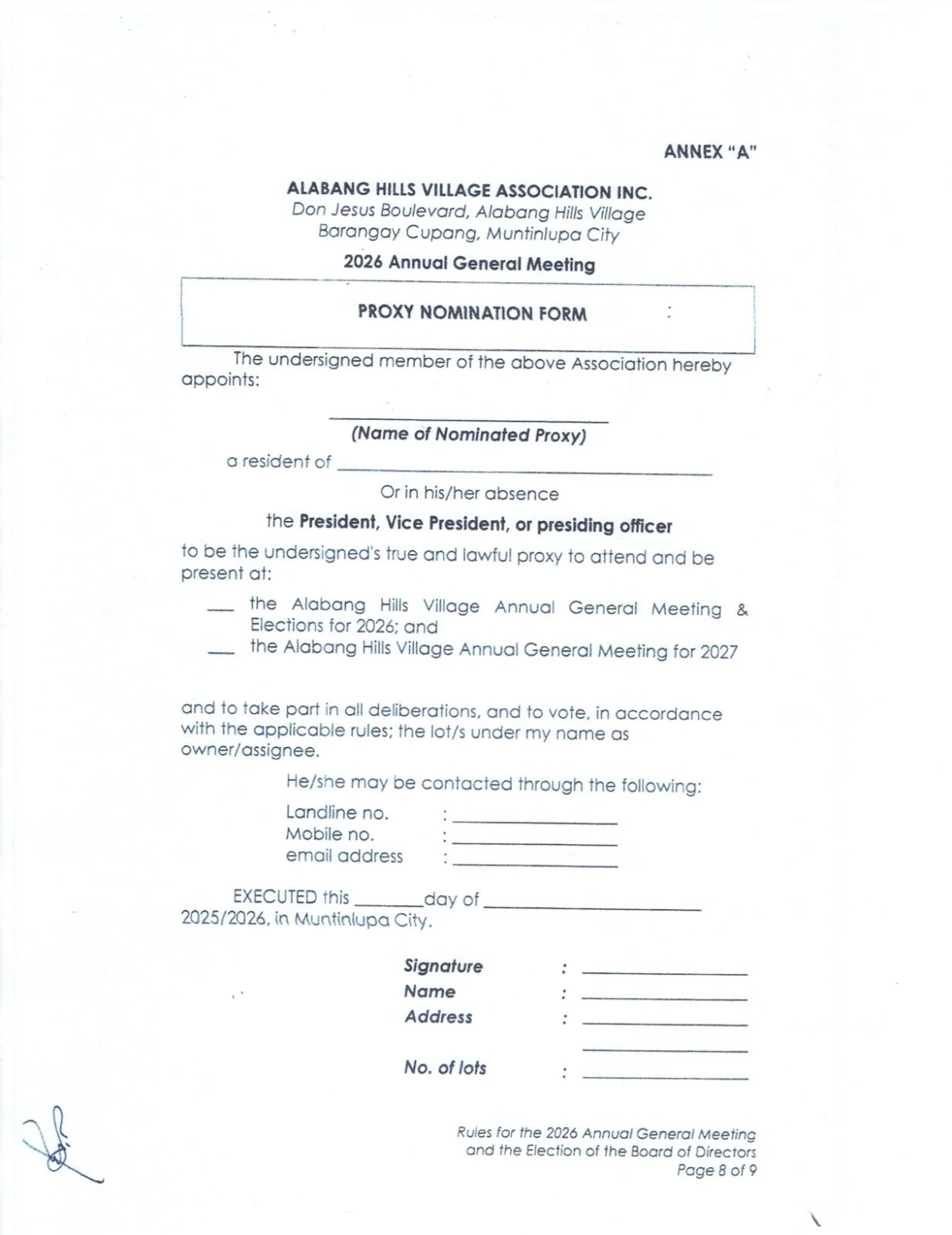 For those who have not yet submitted their proxy, may we kindly ask just 5 minutes of your time to fill out the attached form. Once completed, you can simply send a photo or copy via Viber to any board member you know—there is no need to submit the original copy at this time.